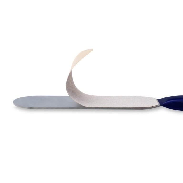 How to use: Peel off the protective paper from the overlay, then attach it to a dry and clean grater handle with glue. After the procedure is finished, peel off and throw away the abrasive overlay. Remove any remaining glue with an acetone-based liquid. The glue is strong, but it is easy to remove and leaves no trace. Sterilize the grater handle.