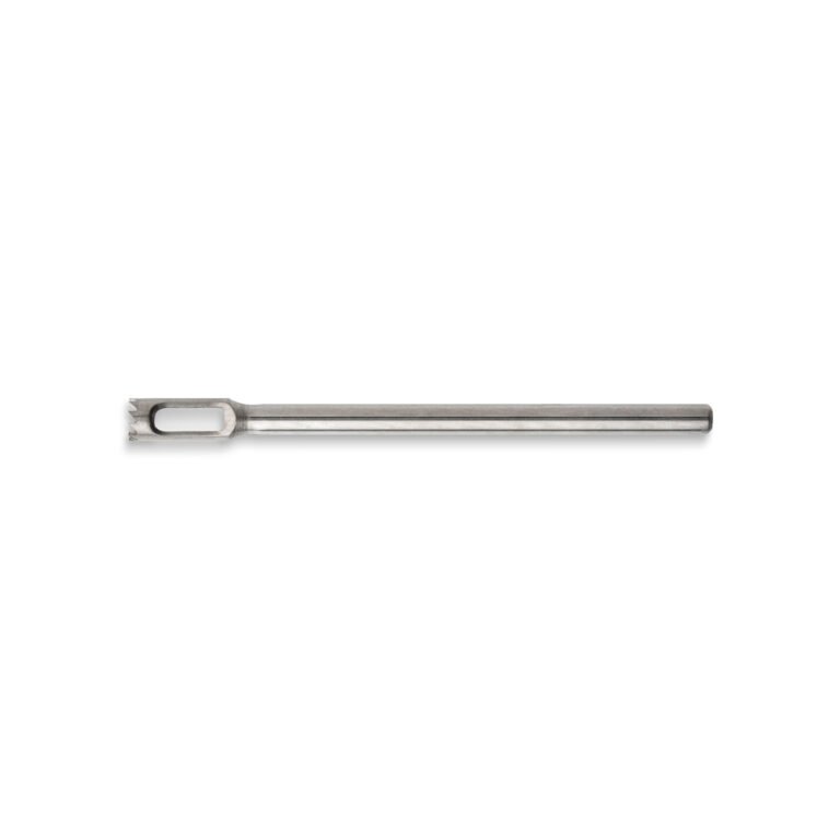 A steel vacuum drill bit in the shape of a stylus, smooth ended, size 2.3 mm. Useful when eliminating calluses, corns, and core removal. Used to accurately and safely remove deeply located roots in hard and painful corns on the feet.