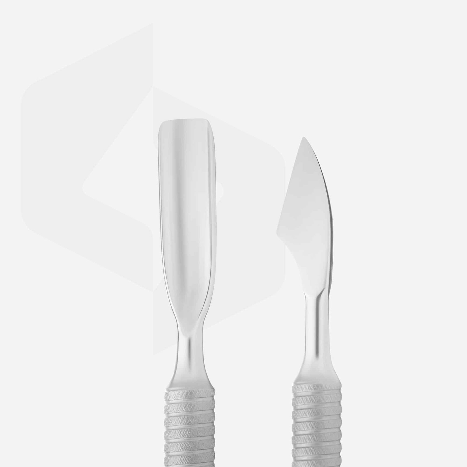 Key features rectangular pusher+knife double-sided knife sharpening professional manual sharpening recommended for both manicure and pedicure non-slip handle for superb grip AISI 420 stainless steel Specifications Brand STALEKS PRO Series Smart Purpose For manicure and pedicure Material Stainless steel Diameter 6 mm The working part Rectangular pusher, Remover Disinfection Yes Sterilization Yes