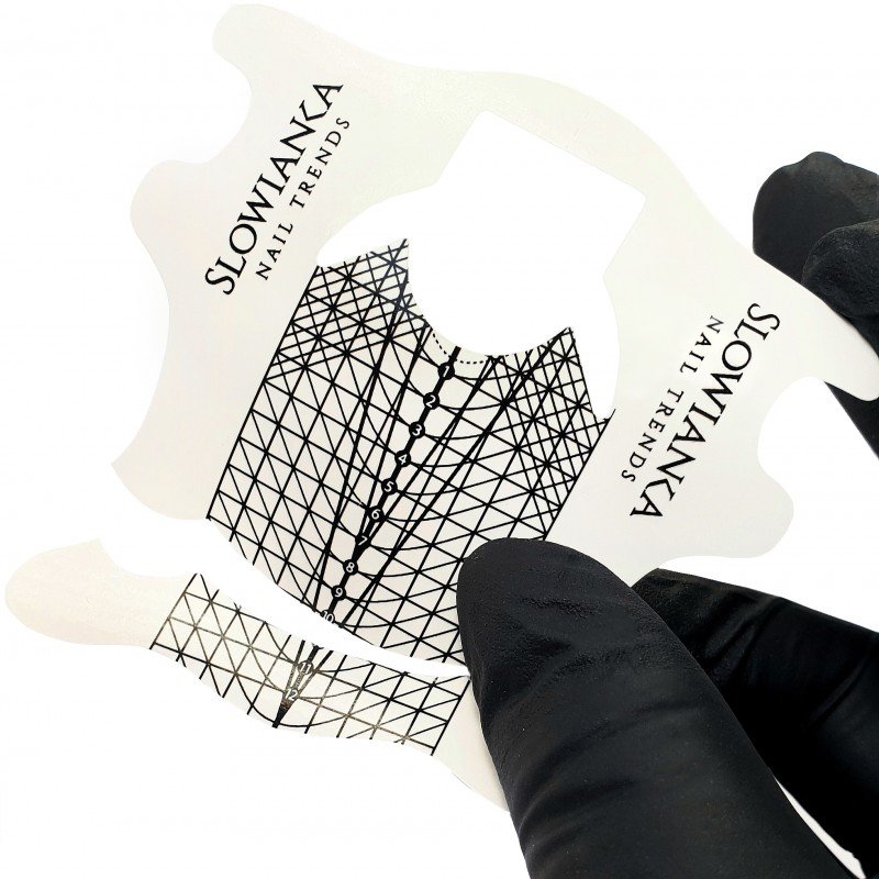 The template has a cutting line and perforation that allows you to create shorter nails. Its side lines are also important – long and densely spaced.