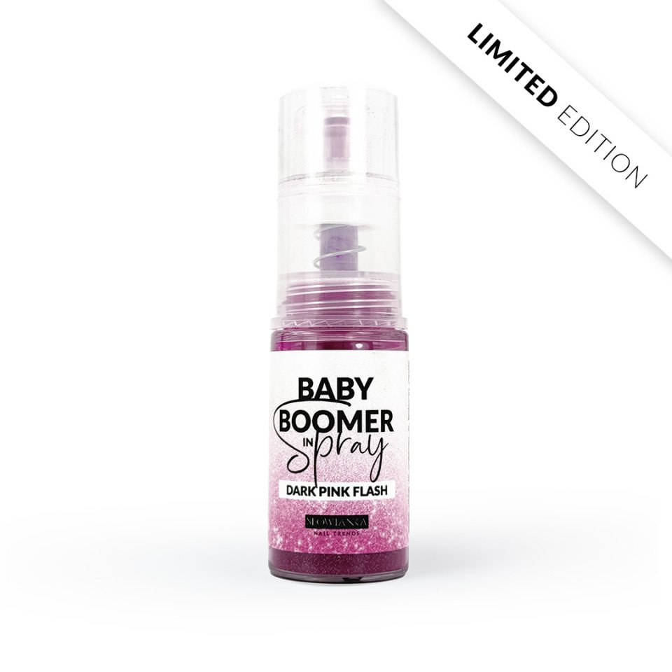 Innovative glitter Babyboomer in Spray – only at Slowianka! A wonderful and revolutionizing look at Baby Boomer styling. It guarantees comfortable, fast work in the salon and a phenomenal, unparalleled final effect, as well as incredible styling durability. Baby Boomer Dark Pink Flash in Spray from Slowianka Nail Trends is a fine, glittery spray powder in a very saturated dark pink color – highly shiny, with lots of tiny shimmering flecks and wonderfully suitable for creating all kinds of styling! An unbeatable and innovative way to create a beautiful baby boomer. Provides a beautiful, glittery tonal transition for styling. Strengthens and strongly hardens the natural nail – ideal for clients who love baby boomer. A huge convenience in the work of the stylist, significantly reducing the time to create the styling. The number of steps involved in making the decoration has been significantly reduced thanks to it. Fashionable styling is now fast, durable and very impressive.
