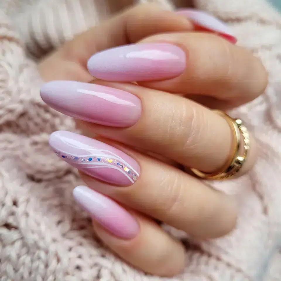 Mega hit of the Mix Gloss collection of powders and effects . Holographic pajamas used in various styles, including the recently popular Princess Nails trend (gel ombre with glitter near the cuticles).
