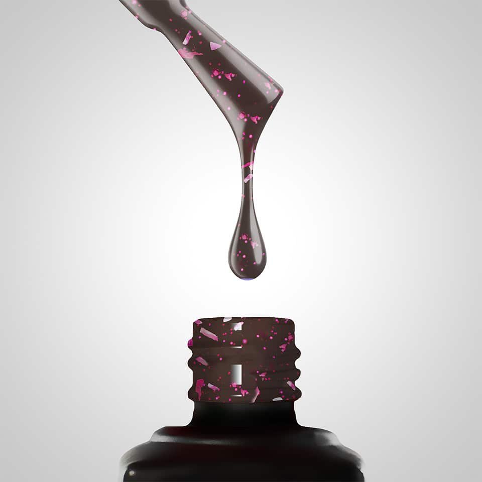 503 Rose Flakes Fishnet from the Wild Vintage collection by Slowianka Nail Trends is a novelty that you won’t find anywhere else. This unique hybrid “tights” varnish is distinguished by a semi-transparent, black color with the addition of metallic flakes in a deep, fuchsia shade. Additionally, miniature, round pajetas – pixels – also in an intense fuchsia color immersed in it, create an amazing effect resembling tights on the nails. It is an ideal choice for autumn, a must-have on every stylist’s shelf. The varnish blends in perfectly with natural nails in the climate of autumn, emanating a nostalgic vintage style. It looks wonderful both in gloss with Top No Wipe, and in a matte finish with Top Velvet. It can be the main element of the styling or be a background for French or minimalist patterns.