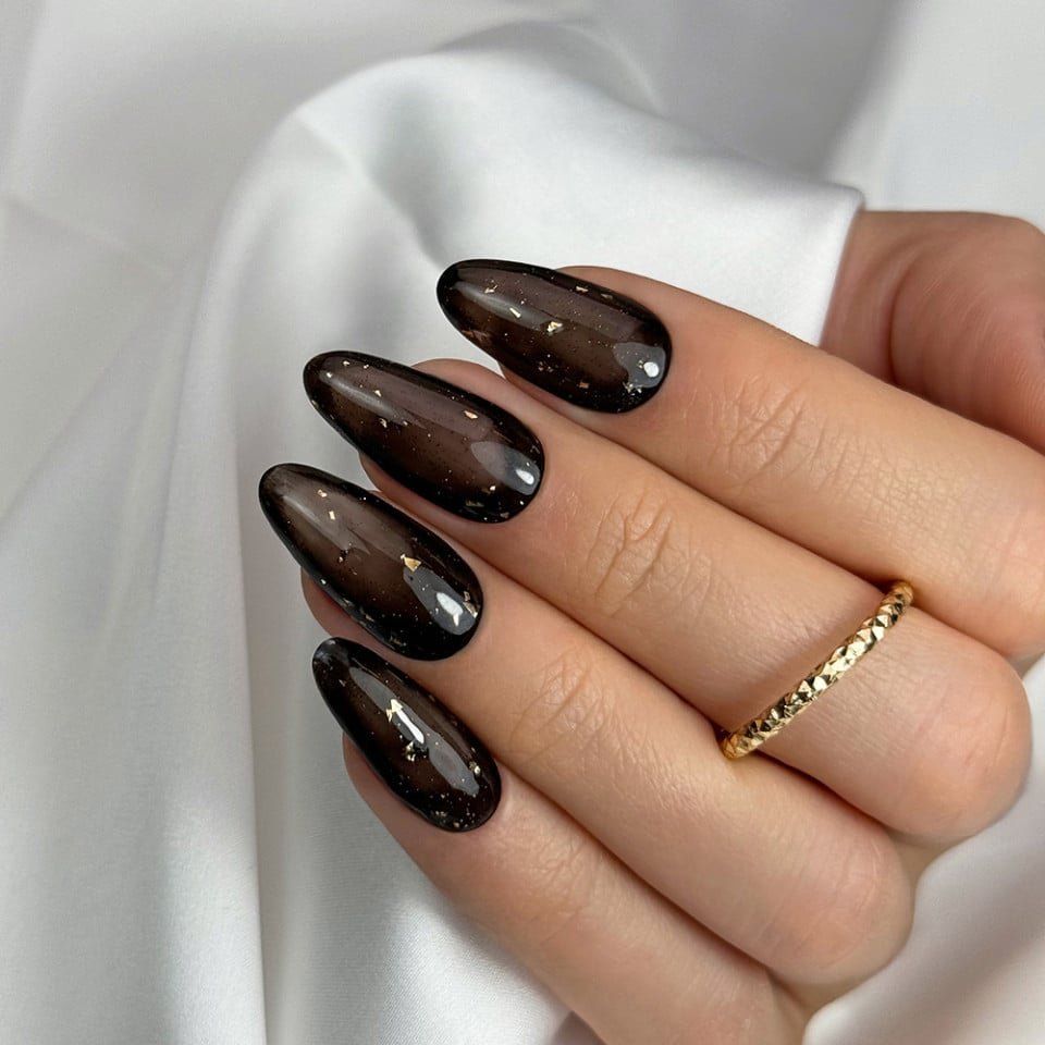 semi -transparent , black hybrid with the addition of gold flash particles and metallic flakes ,