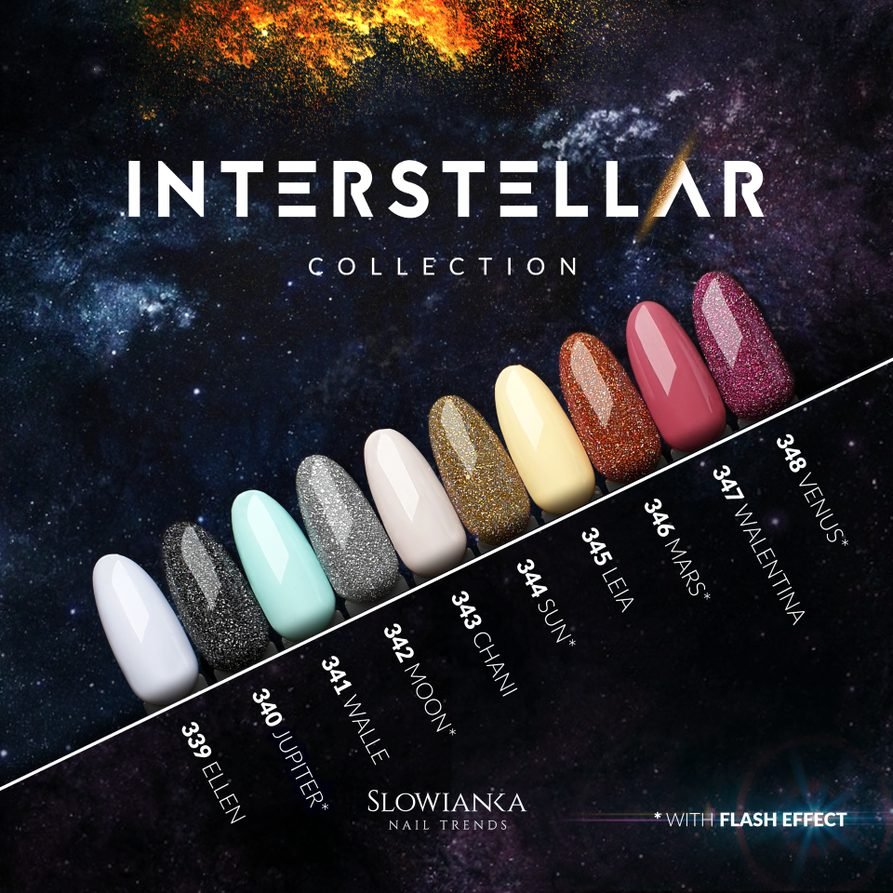 The interstellar Interstellar collection is an “otherworldly” palette of ten hybrid colors from Slowianka Nails Trends. The main idea behind the creation of this collection was the magic and charm of space. It consists of five satin colors and five glitter ones. The names of the former are inspired by real or movie characters related to the Universe. Glitter shades are named after elements of the solar system.