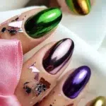 Accessories for painting and decorating nails, such as Violet Metallic powder, can completely change a classic manicure. In this case, the pollen gives the nails a strong, intense and sharp purple color. It is best to use it as an addition to the entire styling to avoid an overabundance of colors. Just apply the powder to 1 to 3 nails so that it is visible and not overwhelming.