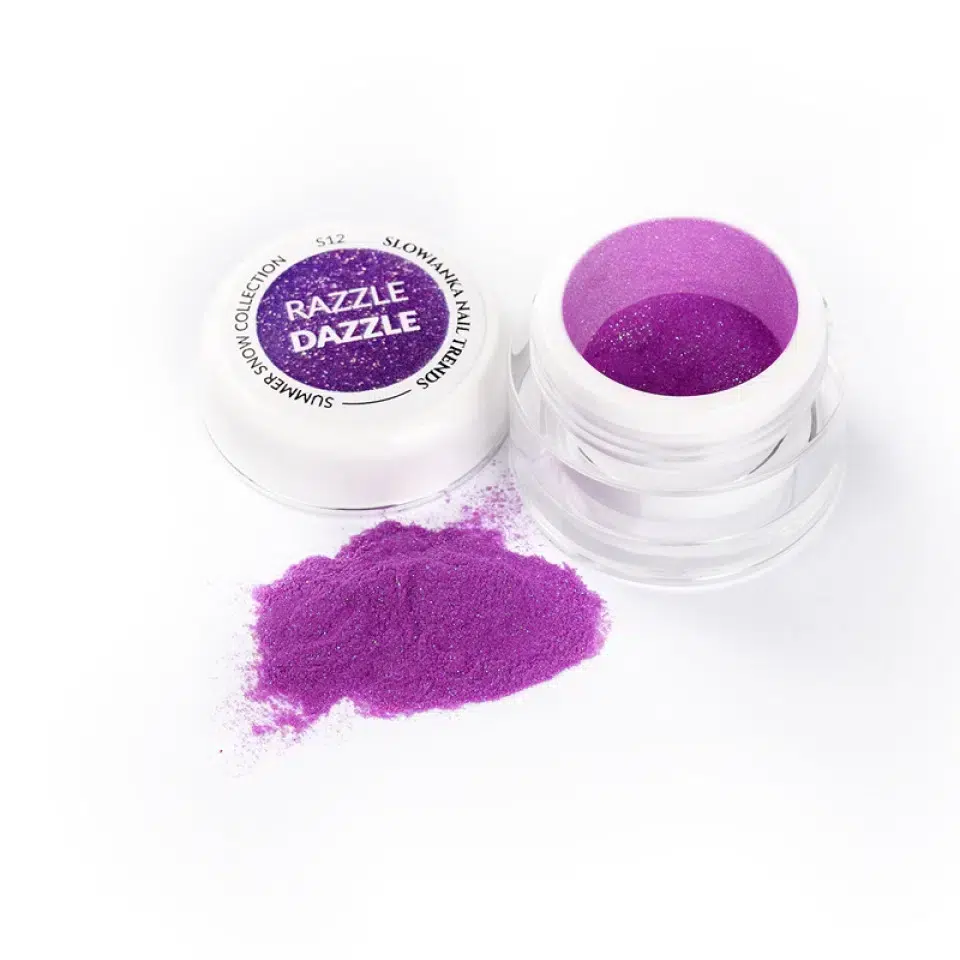 Summer Snow S12 Razzle Dazzle powder from the Slowianka Nail Trends brand is a truly revolutionary way to create a hybrid manicure. The Summer Snow line includes nail art accessories in the form of rough powders. They are also called 3D dust or glitter powder.