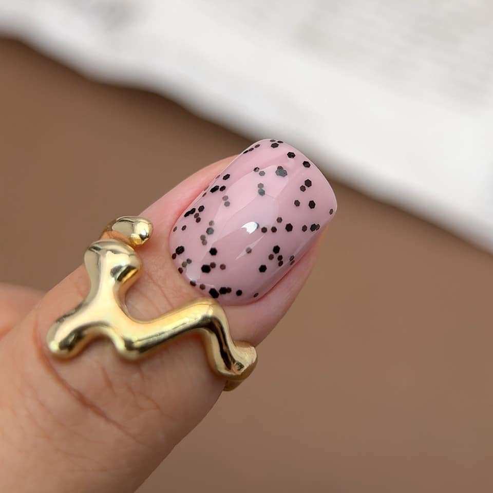 Top Vintage Black by Slowianka Nail Trends is a unique product for autumn styling. It contains black paillettes in various sizes, which create the effect of quail eggs. The top is durable, flexible and scratch-resistant, providing shine on nails for up to 5 weeks. Suitable for both natural and artificial nails. Despite the intense saturation with particles, it remains transparent. Ideal for vintage and animal-themed styling.