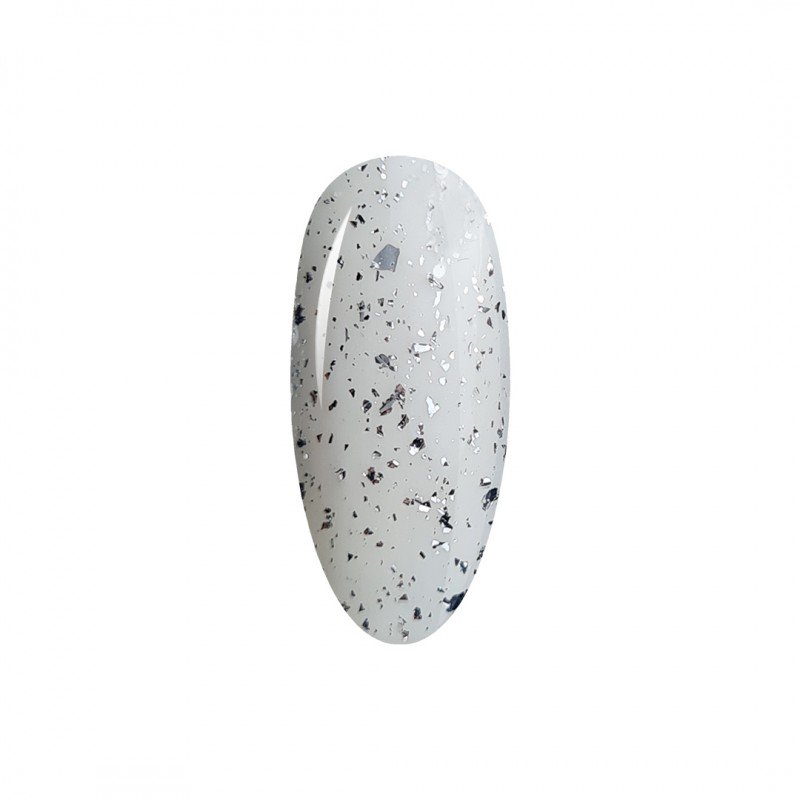 Silver Top is a rubber product, so it is suitable for both natural and artificial nails. It has small pieces of silver metallic foil of various sizes.