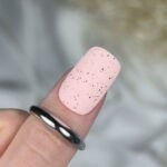 Velvet Top Coat KillderEgg is the perfect top coat for finishing “quail egg” nail designs. It looks great both as a standalone single finish and as a subtle background for various minimalist decorations (stamps, floristry, mosaic). It is unique because it does not create a convex structure – the micro particles contained in the top coat are very flat and delicate. This is a huge advantage during application, because it does not add unnecessary thickness, and the light is reflected evenly , giving a perfectly smooth nail surface. The particles are finely ground, with a deep black color – thanks to this, they create a pattern that is both subtle and expressive. The top coat gives a perfect, matte finish that does not shine over time, and to the touch resembles soft, pleasant silk. The durability of the top coat is very high – it does not scratch or wear off even up to 6 weeks. (Although remember: beautiful nails are not work tools – it is worth wearing gloves when using cleaning products). The top also has its “twin” with a shiny finish – Top KillderEgg No Wipe. Combining both in one style gives an incredibly harmonious effect .
