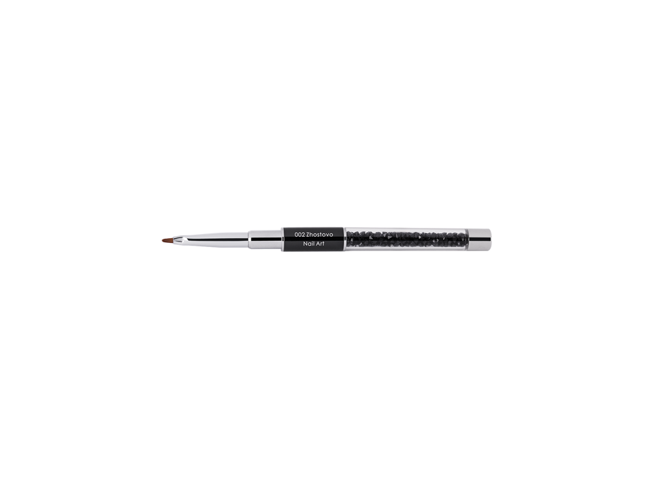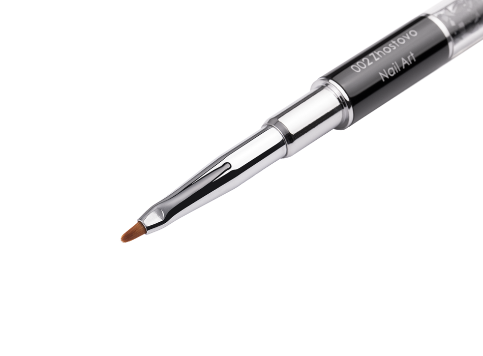 Brush for decorating using the ZHOSTOVO and HYPNO FLOWER techniques. The bristles shaped like a cat’s tongue are perfect for creating larger petals and leaves. They help to achieve depth in styling. The brush is also recommended for fillings in micropainting and all kinds of shading. The elegant handle filled with black crystals lies perfectly in the hand.