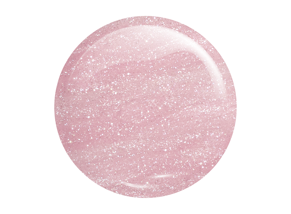 A building gel with shimmering particles in a shade of whitened pink. Available in two capacities.