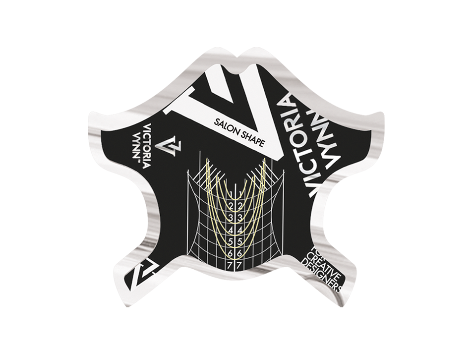 Nail extension forms with a perfect salon shape, made of metalized, laminated paper. Ideal for working with Mega Base hybrid base, gel and acrylic gel.
